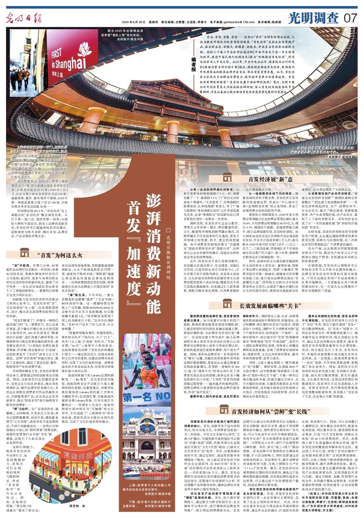 前期,研究院统筹科研力量,与光明日报组成联合调研组,深入北京、上海、成都等地,就首发经济链条各环节开展调研并撰写调研报告,提出推动首发经济高质量发展的对策建议。6月26日出版的《光明日报》在“光明调查”版面,以整版篇幅刊发调研成果《首发“加速度”,澎湃新动能》。文章由对外经济贸易大学北京对外开放研究院王颖、邓慧慧、张焕等执笔。全文如下。