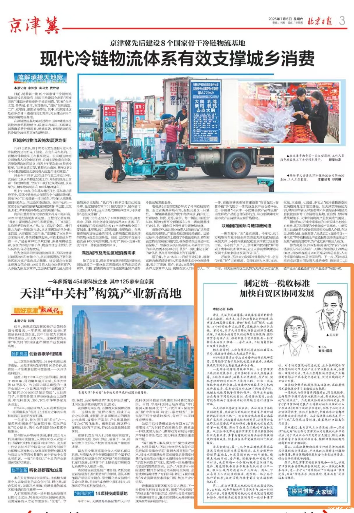 7月5日,对外经济贸易大学北京对外开放研究院研究员、国际经济贸易学院副院长蓝庆新教授接受《北京日报》记者采访,围绕“制定统一税收标准 加快自贸区协同发展”发表观点,相关内容发表在《北京日报》京津冀版面。以下为文章内容。